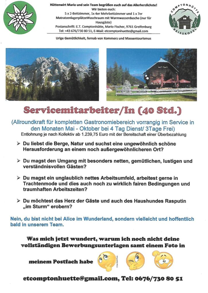 Comptonhütte sucht Mitarbeiter