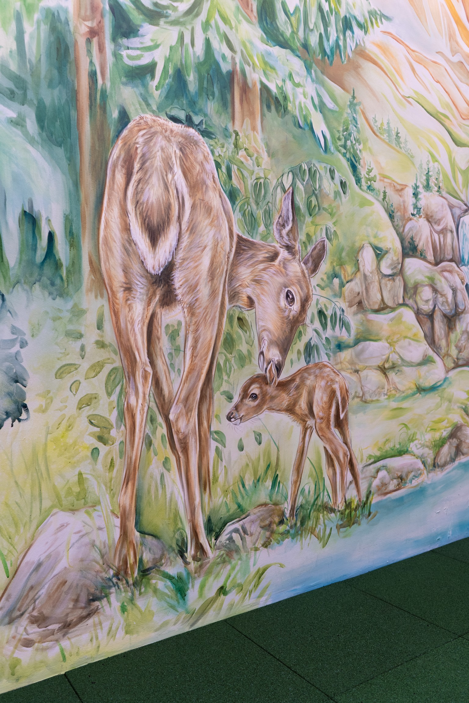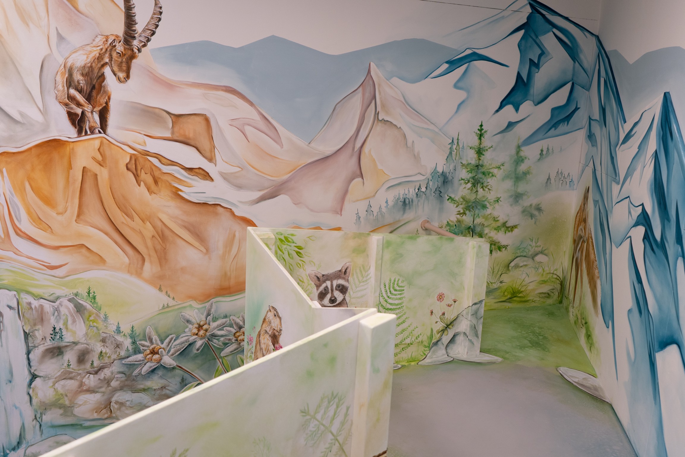 Die Berg- und Unterwasserwelten erzählen mit nur einem Bild die Geschichten unserer Natur. Der Steinbock auf dem Berg, die Eule am Baum und die Reh-Mutter am Flussrand.