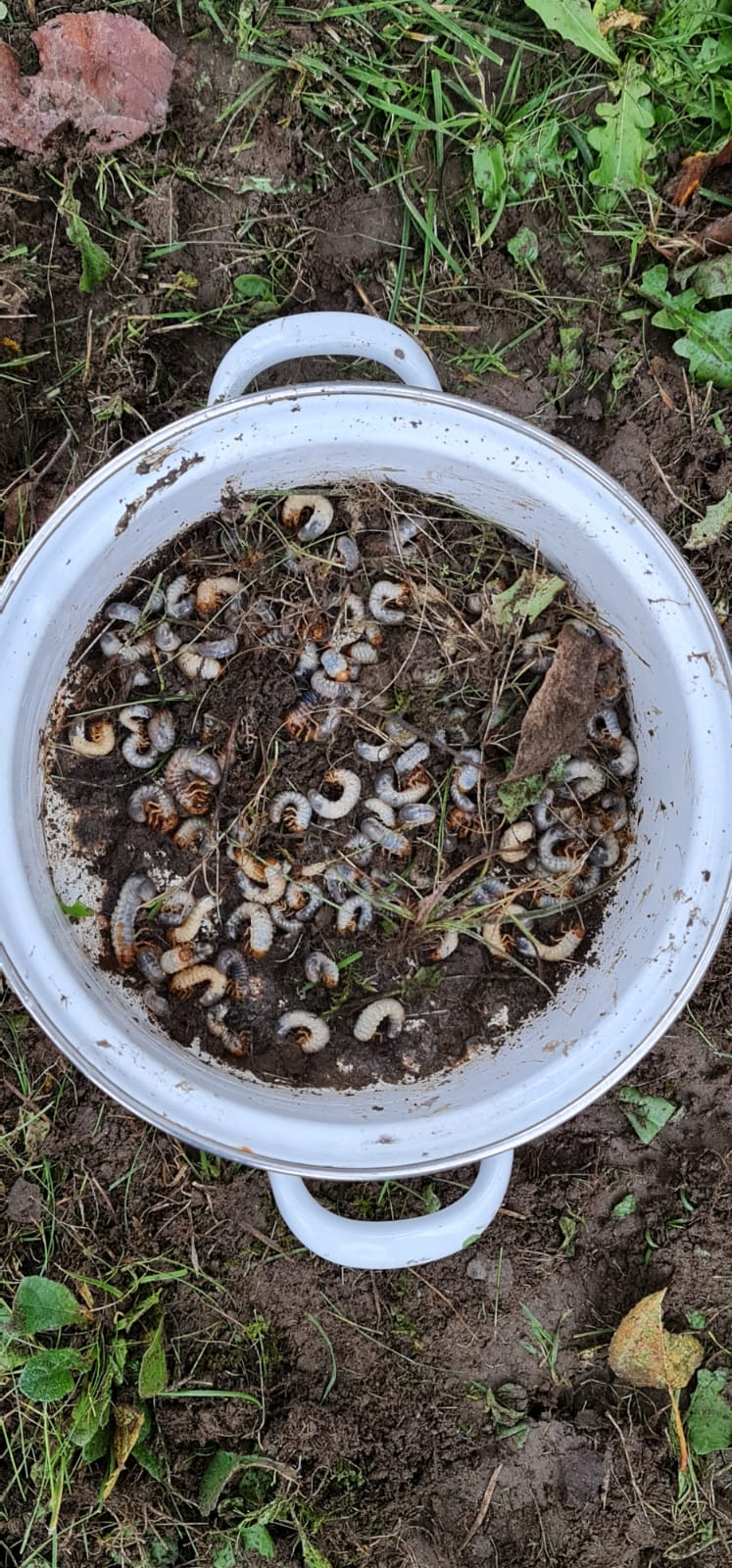 In diesem Jahr haben zahlreiche Mai-Käfer-Weibchen ihre Eier nach ihrem Hochzeitsflug im April und Mai in der Erde abgelegt. Im Juni/Juli sind daraus die typisch schmutzig-weißen, c-förmigen Larven geschlüpft. Sie ernähren sich durch Wurzelfraß und stellen ein großes Problem für die lebenden Pflanzen dar.