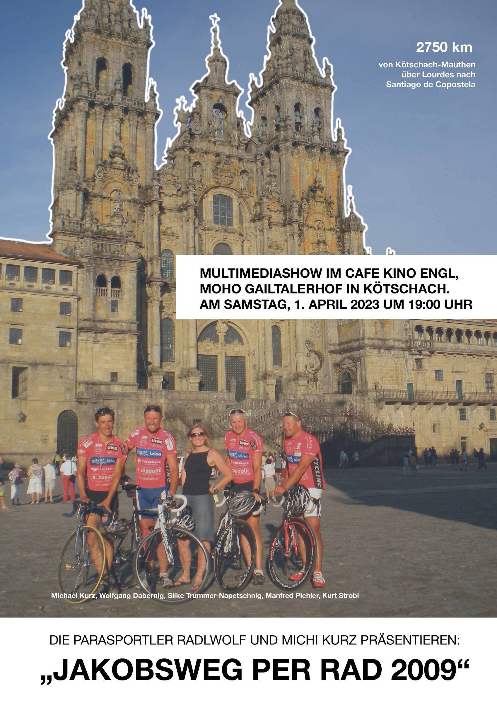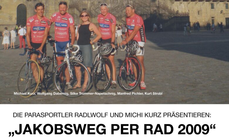 Die Parasportler Radlwolf und Michi Kurz präsentieren die Multimediashow: „JAKOBSWEG PER RAD 2009“
