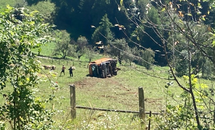 Der 40-Jährige konnte noch aus dem Fahrzeug springen, bevor dieses einen Holzzaun durchbrach, umkippte und rund 95 Meter über einen Abhang schlitterte und seitlich zum Stillstand kam.
