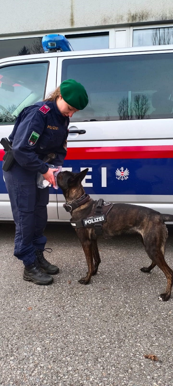 Erstmals befand sich die holländische Schäferhündin „OANA“ im Einsatz, die die erste Personenspürhündin der Kärntner Polizei ist. Erst vor einem Monat schloss sie gemeinsam mit ihrer Polizeidiensthundeführerin Christina die Abschlussprüfung im Spezialbereich „Personenspürhundesuche“ erfolgreich ab.