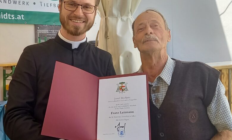 Über eine Ehrung durfte sich Franz Leitmann freuen, für seine ehrenamtliche Tätigkeit wurde er mit dem Modestusabzeichen ausgezeichnet.