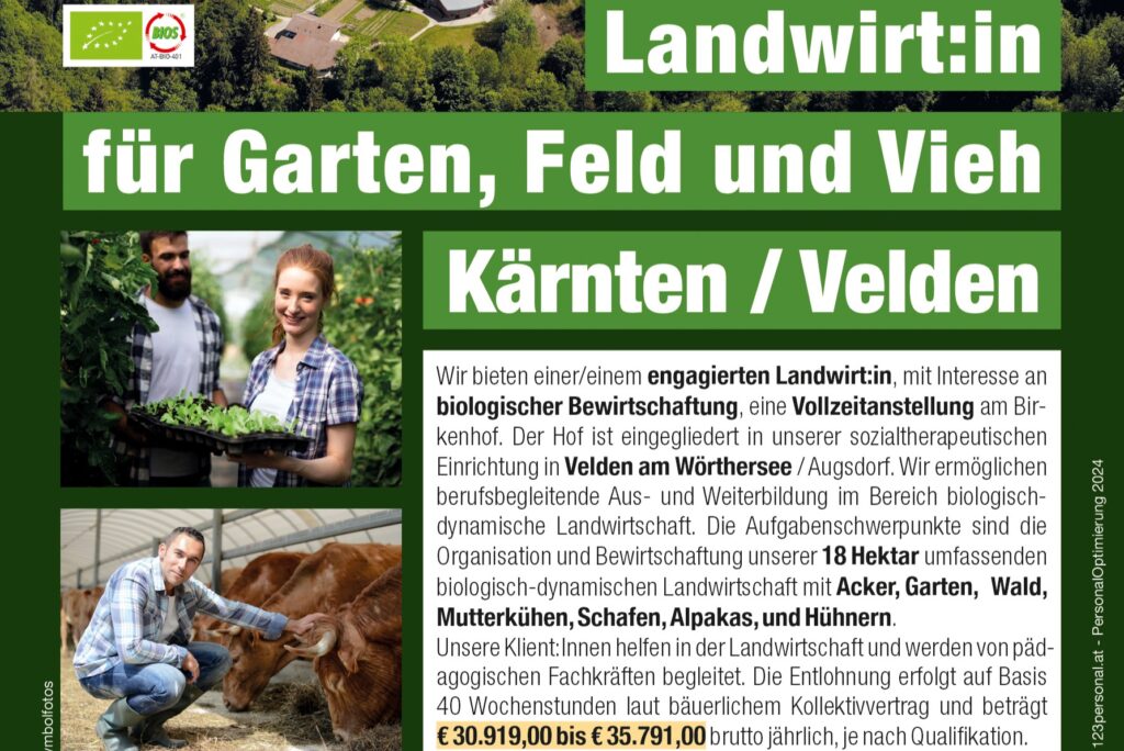 Dein Arbeitsplatz beim Lebensraum Birkenhof in Velden!