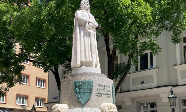 Vor 70 Jahren, am 15. August 1954, wurde der neu gestaltete Spanheimer-Brunnen am Alten Platz in Klagenfurt feierlich enthüllt. Heute kennt man dieses markante Denkmal vom Dr.-Arthur-Lemisch-Platz. Nur wenige erinnern sich daran, dass es einstmals zerlegt und in Einzelteilen an wechselnden Standorten aufgestellt war. Kunsthistorikerin Brigitte Ponta-Zitterer vom Geschichtsverein für Kärnten hat sich mit der spannenden Geschichte des Brunnens befasst. Entworfen hat ihn der bekannte, aus Klagenfurt stammende Bildhauer Josef Kassin. Weil dieser Ende 1931 starb, konnte er ihn aber nicht mehr vollenden und aufstellen. Das übernahm dann sein Mitarbeiter Carl Langer im Auftrag des Verschönerungsvereins Klagenfurt. Die Statue Bernhards von Spanheim war ursprünglich aus Bronze und wurde 1940 von den Nationalsozialisten zu Kriegszwecken eingeschmolzen. Der Klagenfurter Bildhauer Arnulf Anton Pichler ersetzte sie schließlich durch eine aus Carrara-Marmor.